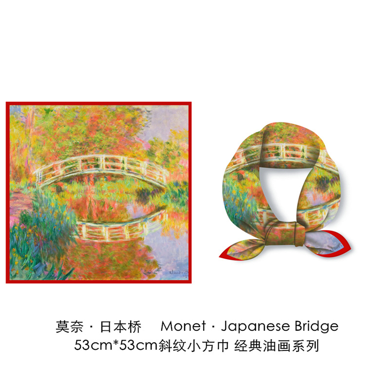 Monet lukisan minyak gaya elegan sutra buatan syal kecil syal persegi segar manis dicetak syal syal dekoratif grosir