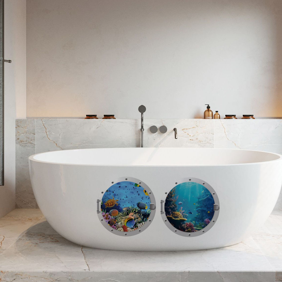 Stiker dinding pemandangan laut anak, kapal selam lintas batas cerita kapal selam ikan stiker dinding kamar bak mandi stiker hias merekat sendiri dapat dilepas