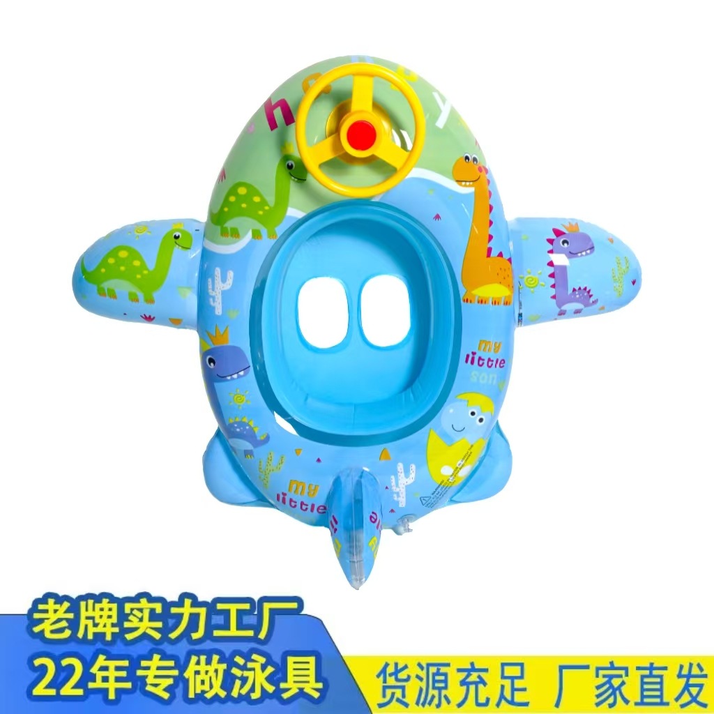 新款儿童戏水充气游泳圈宝宝防侧翻平底脚洞飞机造型游泳艇