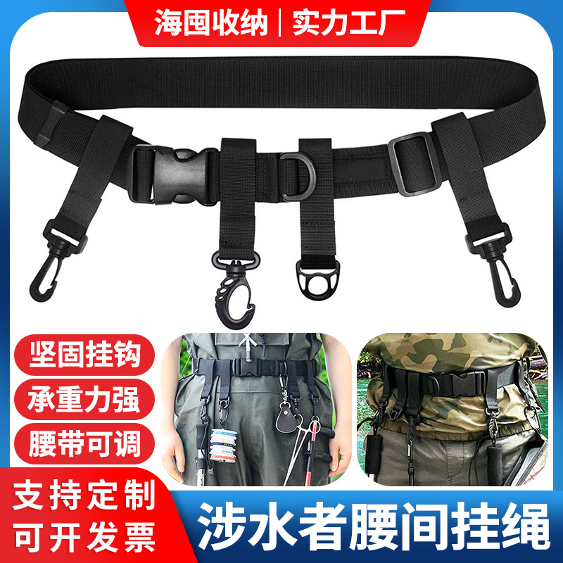 Sabuk wader memancing, sabuk taktis luar ruangan surfing kayak memancing cincin D gantung Aksesori gesper