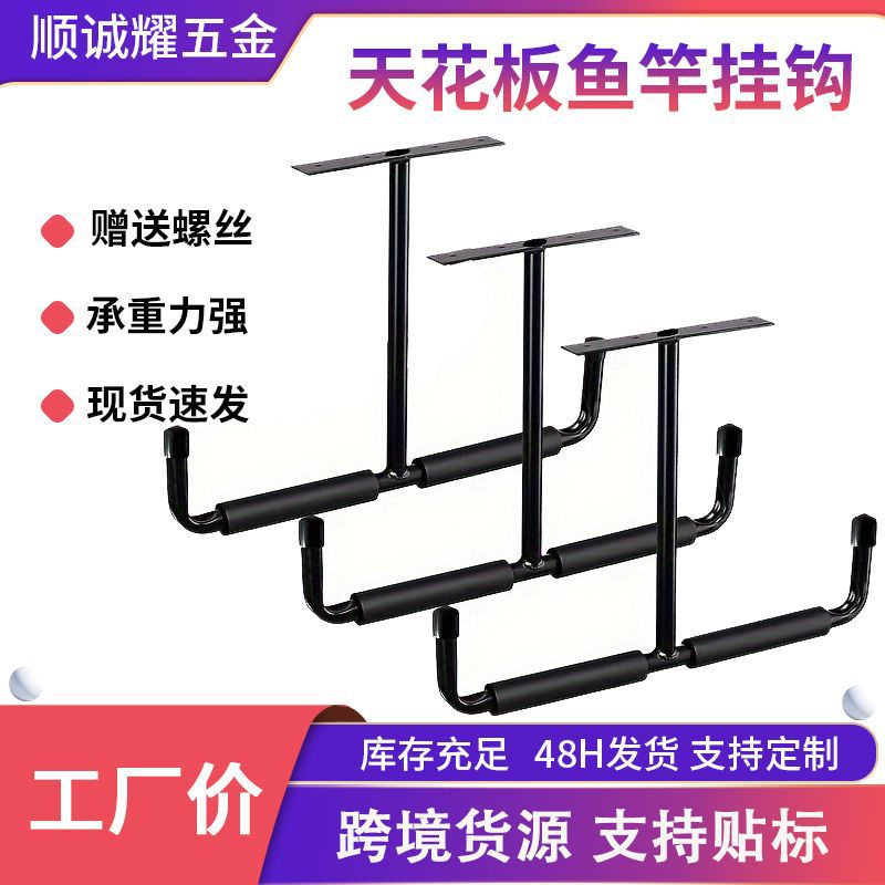 Kait Model T Logam Langit-Langit Batang Pancing Sepeda Penyangga Kayak Skateboard Dinding Besi Gantung Rak Display