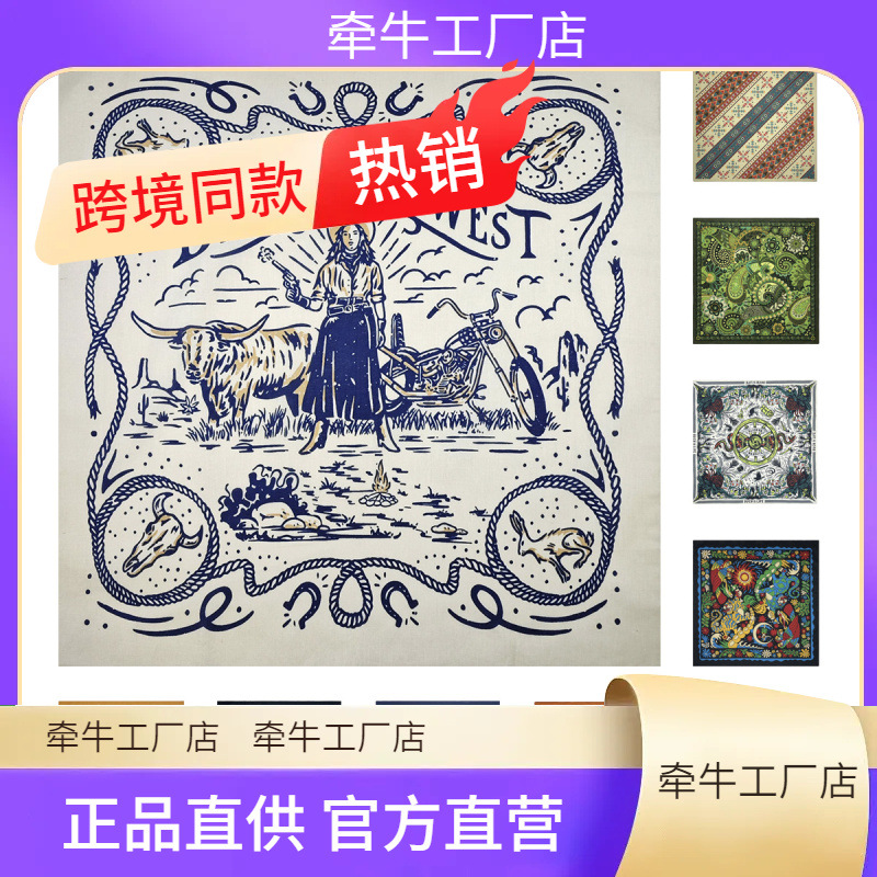 Syal Persegi Retro Katun Murni Gaya Amerika Ameyaka Syal Pria Syal Jilbab Kuno Syal Hip Hop