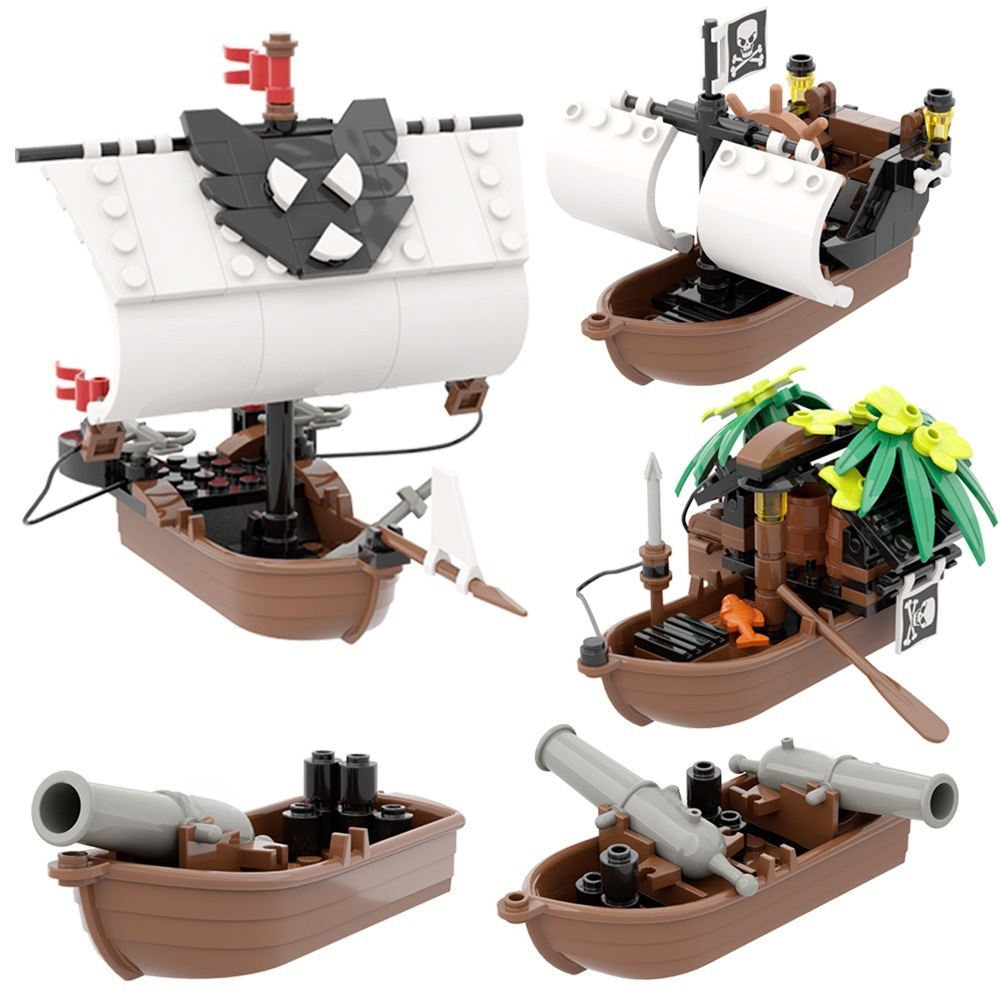 Cross-border MOC perakitan blok partikel kecil rafting rakit bajak laut gunboat port adegan Dekorasi desktop Kreatif