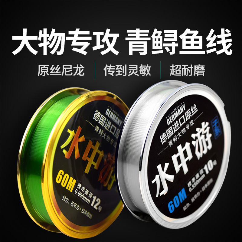 Nilon transparan jalur utama sub-line kuat kekuatan tarik besar garis sturgeon hijau terikat kompetitif lubang hitam raksasa line perlengkapan memancing