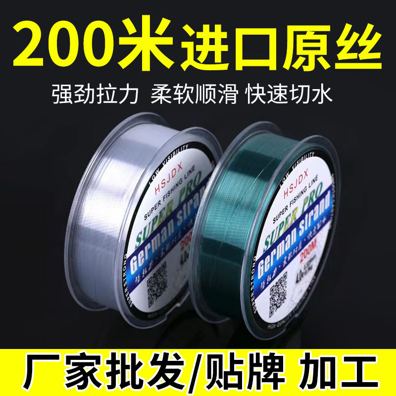 Senar pancing sub-line 200 m, senar pancing meja, senar pancing Luya sutra mentah impor, senar pancing laut nilon tekanan kuat