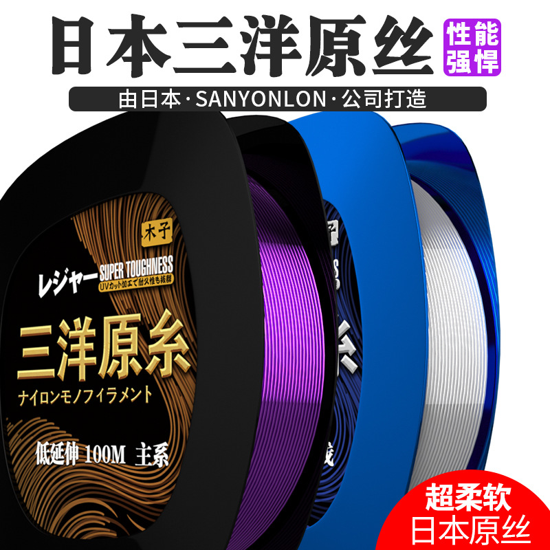Senar pancing Muzi Sanyo presursor 100 meter, senar pancing nilon, senar pancing lembut anti rol, grosir