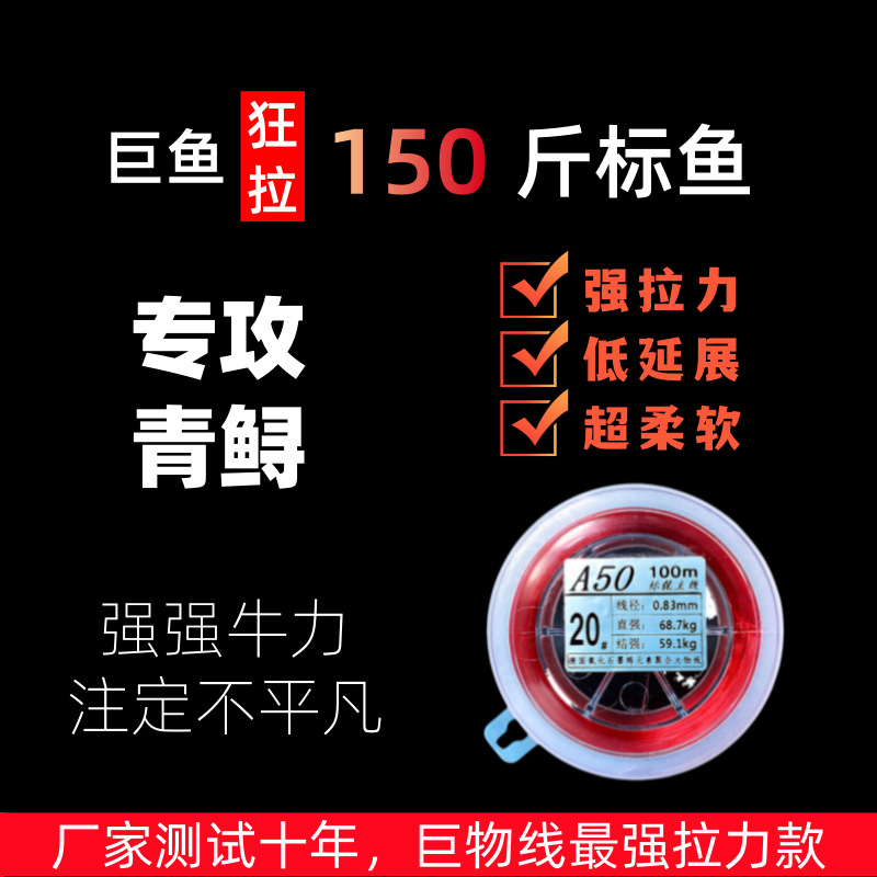A50 garis objek besar sutra mentah garis ikan mas hitam garis Sturgeon 100 m tegangan super kuat garis utama sub-line barang asli impor ikan standar khusus