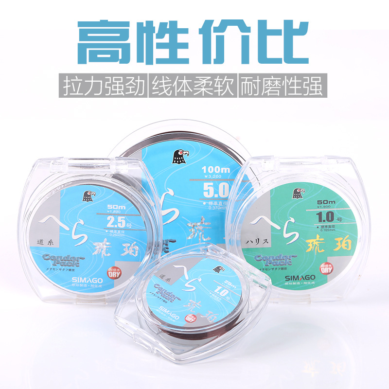 Simogo Shimano senar pancing asli, barang asli Amber generasi utama sub-Line 100 M 50 m 25 m memancing liar lubang hitam