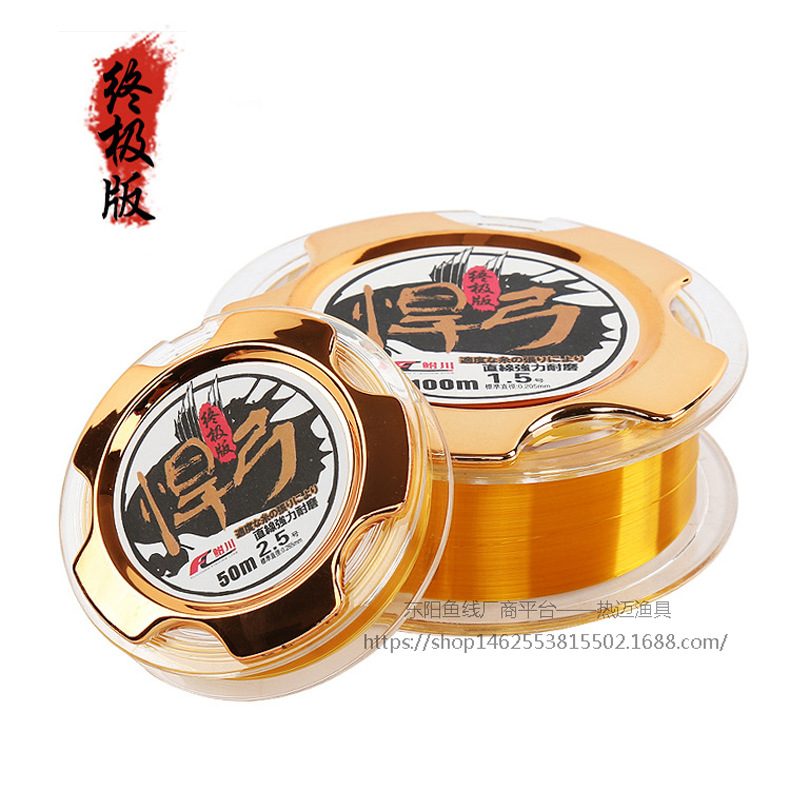 Hanbow senar pancing nilon 50 m, perlengkapan memancing laut sutra mentah impor Jepang 100 m sangat kuat, senar pancing sub-line