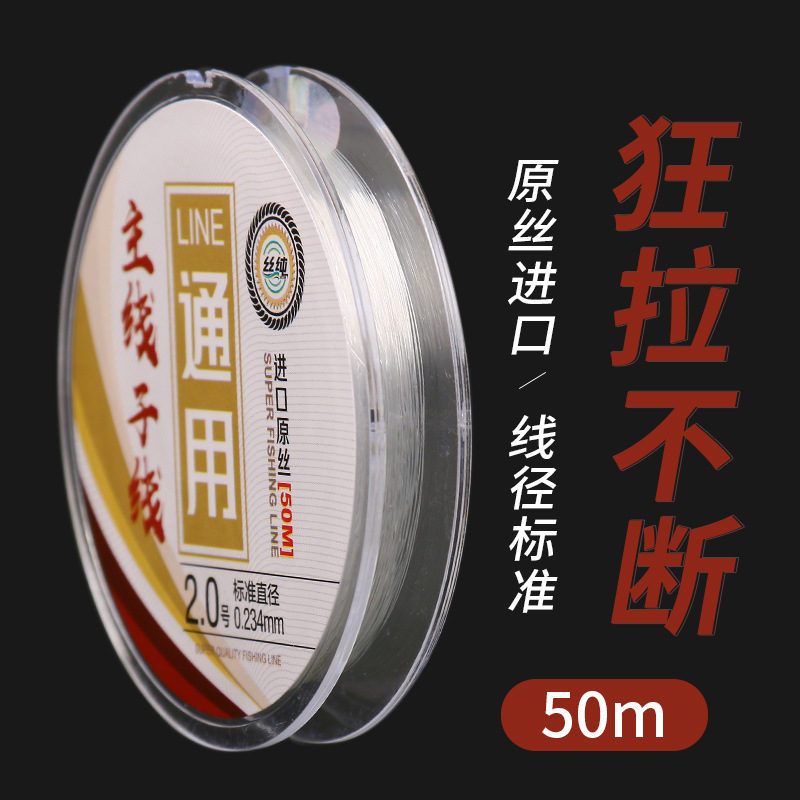 Tali pancing nilon murni sutra sub-line 50 m Taiwan memancing liar tradisional luar ruangan perlengkapan pancing senar pancing super kuat tarik senar pancing