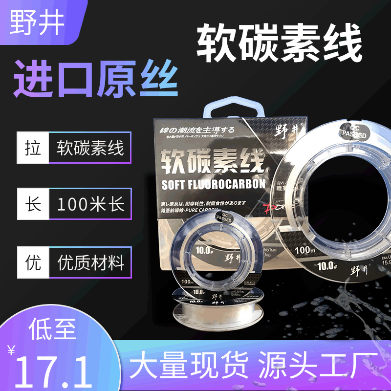 Senar pancing karbon fluorin Jepang, senar pancing karbon lembut sub-line, senar utama anti aus, 100 m, grosir