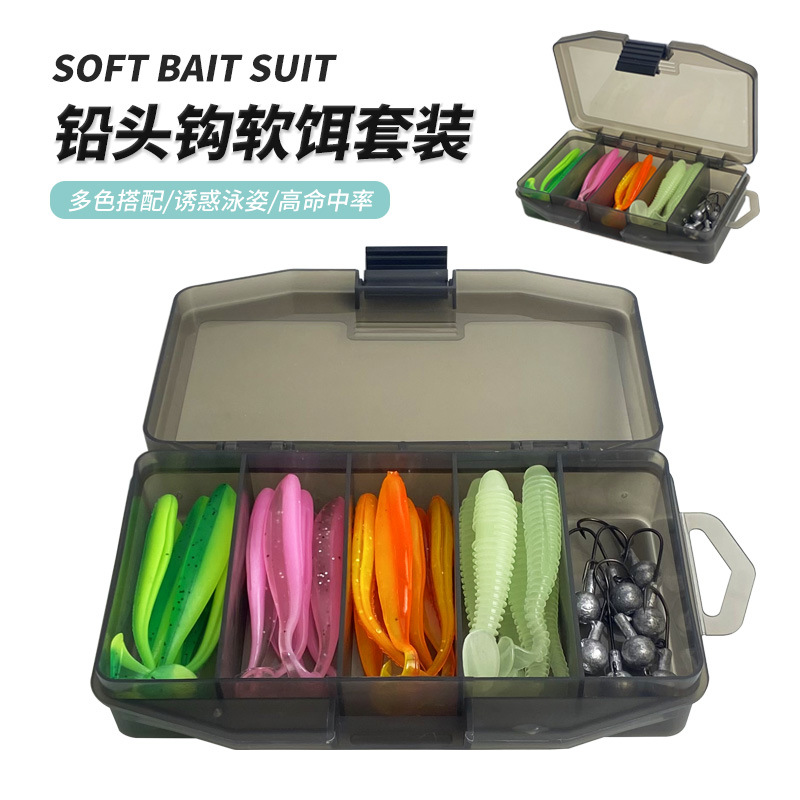 Luya umpan m-6 sesuai timah kait dua warna glossy sekrup T ekor bionik umpan palsu 33 buah setelan pabrik grosir