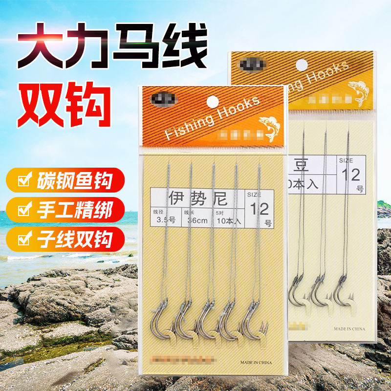 Produk Asli Kait Ikan Lengan Emas Peralatan Pancing Kait Ganda Benang Produk Jadi Set Kait Ikan Kecil Garis Putih