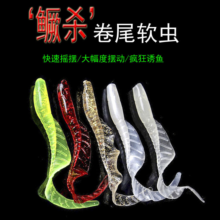 Baru spiral T ekor dua warna umpan lembut sesuai benang t ekor akar memancing laut kepala timah kait crank Luya cacing lembut lintas batas