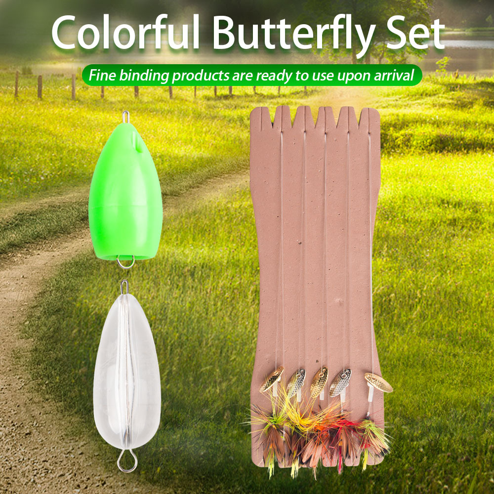 Umpan Palsu Luya Kelompok Pemancingan Kancing Lalat Kupu-kupu Berwarna-warni Set Payet Biji Kuaci Set Garis Putih Kait Mulut Kuda