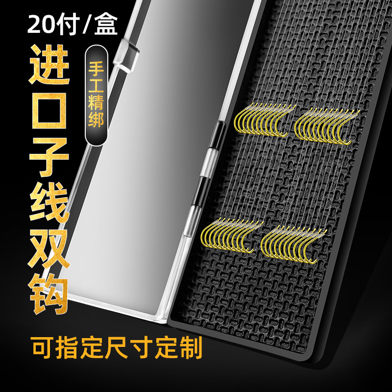 Kail pancing terikat sub benang ganda, produk selesai 20 pasang kotak setelan emas lengan meja memancing kait lengan ikan grosir