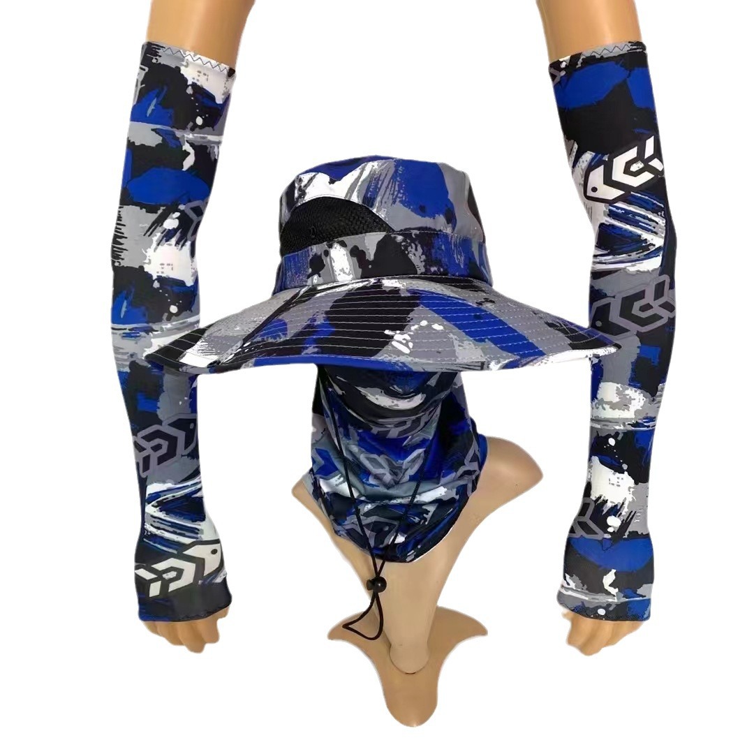 Setelan perlindungan matahari memancing, topi pelindung matahari tepi besar Lengan handuk wajah perlengkapan memancing perlindungan matahari