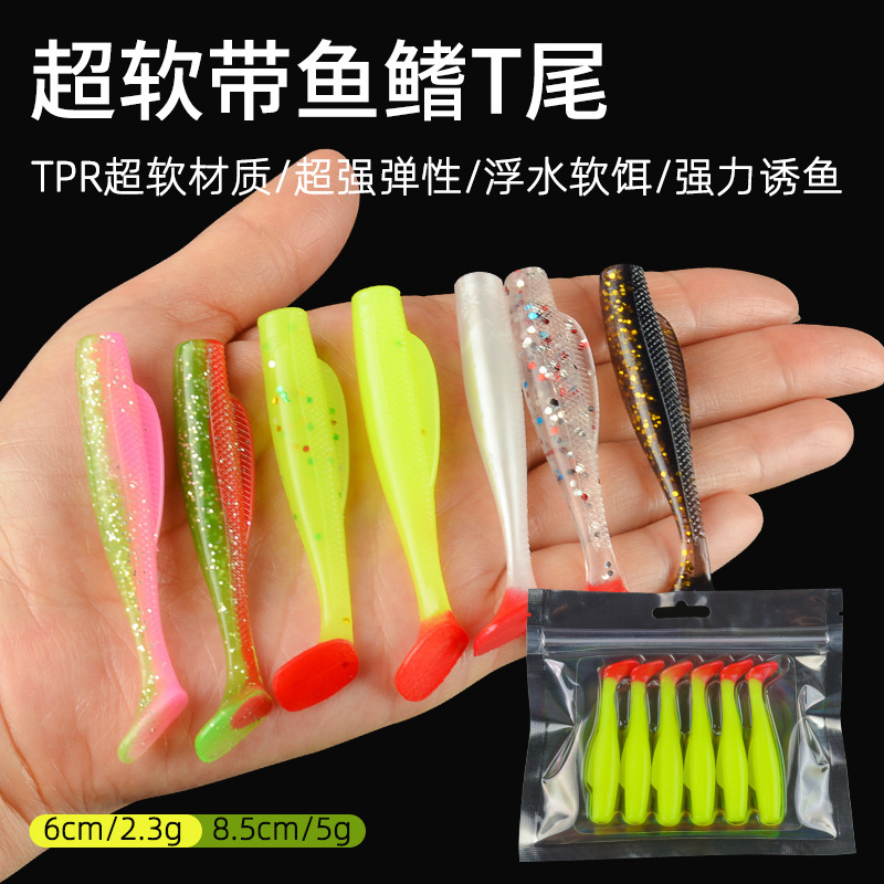 Umpan Ikan Tanpa Kepala Umpan Lembut TPR Mengambang T Ekor 6cm2.3g Set Kombinasi 8 Buah Umpan Cacing Lembut Umpan Bionik