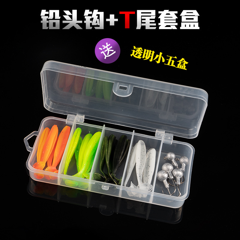 Whale Raider Luya umpan lembut T, set kotak ekor 6.5/1.6g umpan lembut kepala kail setelan manik-manik bass hijau umpan