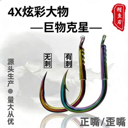 Warna-warni mulut bengkok mulut lurus 4X kait objek besar hijau mata kail objek besar bengkok mulut casing kail datar hit karbon tinggi lubang hitam besar jatuh