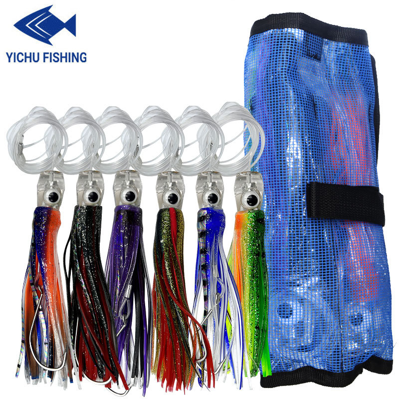 6 buah/pak rok gurita besar, umpan lembut kepala resin umpan cumi-cumi drag memancing perahu memancing laut umpan tembak emas setelan perlengkapan memancing