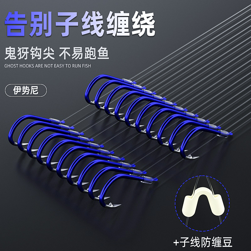 Chuan Ze kait ganda benang kait gigi Serigala kompetisi lubang hitam anti-lilitan selesai kail ikan terikat setelan penuh kail pancing kail ikan mas