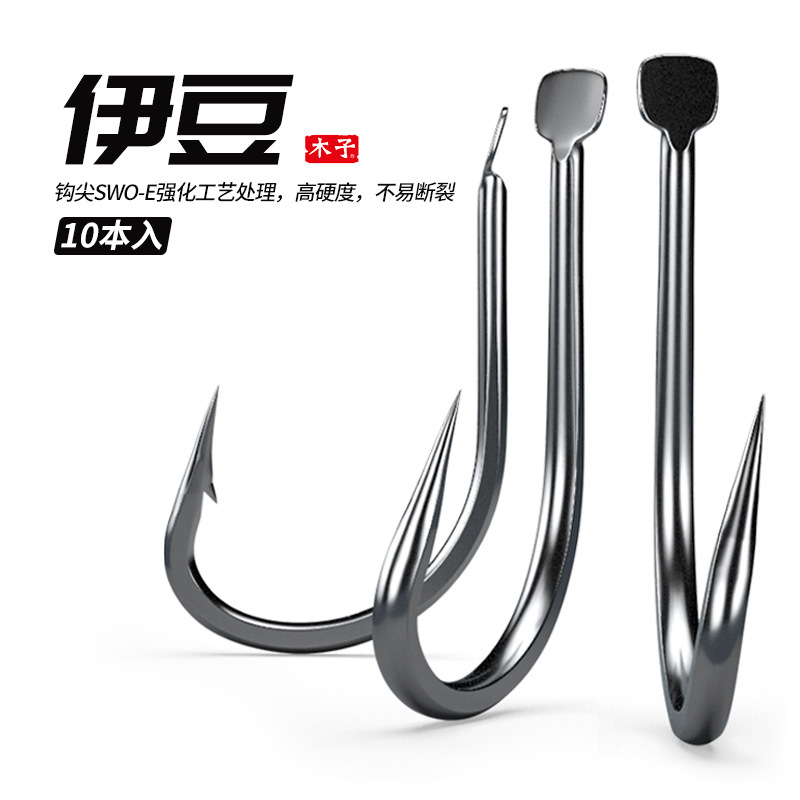 Muzi kait hidou Jepang dengan mulut hitam dan berduri tanpa kail ikan besar berduri setelan grosir 10 buah