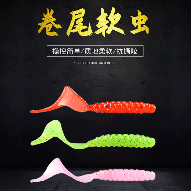 Luya cacing pengeriting ekor tunggal, bahan silikon ikan bionik 3.5cm/5.5cm/7cm