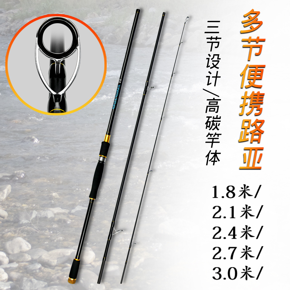 跨境热销3节便携路亚竿碳素M硬调泛用远投竿钓旅行竿直柄枪柄竿