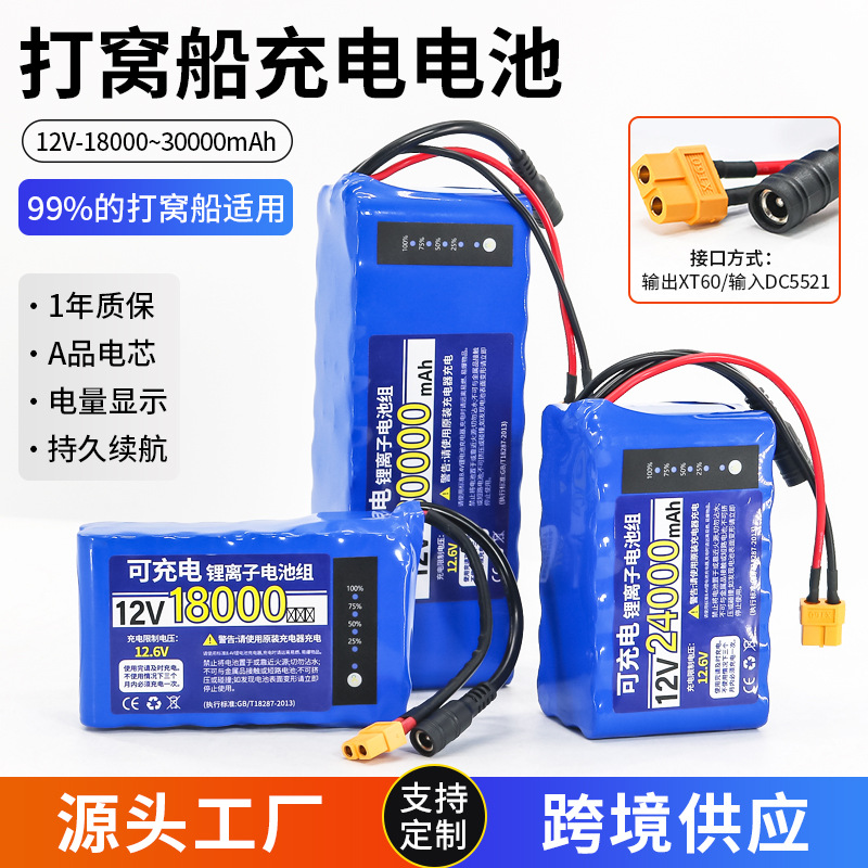 Memancing perahu baterai lithium 12v 18000 mA, kapasitas besar jaring tarik perahu remote control perahu 18650 baterai daya