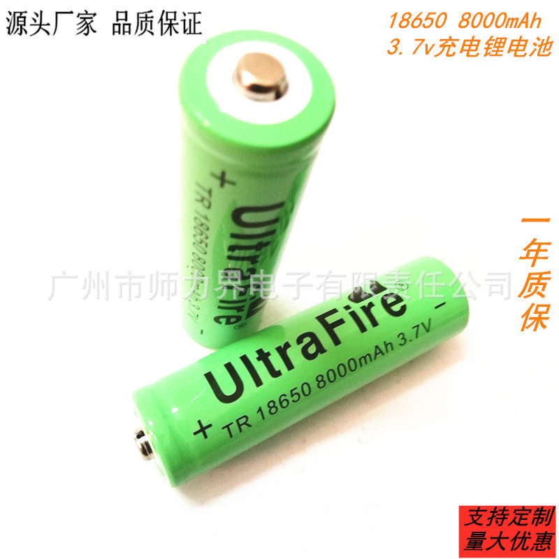 UltraFire 18650 baterai lithium 8000MAH 3.7V stik kecantikan ujung datar baterai isi ulang