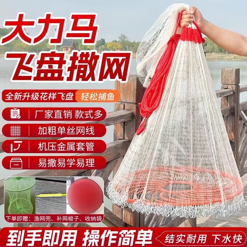 Kuda kuat frisbee ekstra besar jaring lempar rantai melempar jaring lempar tangan peralatan memancing jaring lempar tangan tradisional jaring ikan buatan tangan
