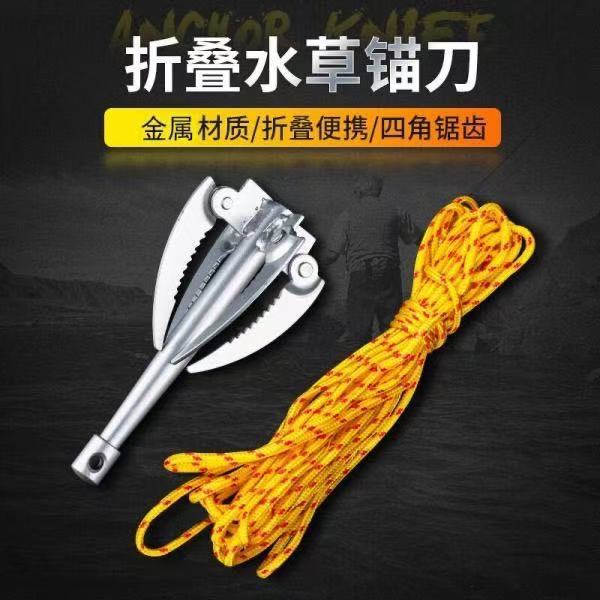 Peralatan memancing pisau tanaman air, pemotong pisau dua kaki tebal lipat tanaman air jangkar pisau penarik sedotan perlengkapan memancing