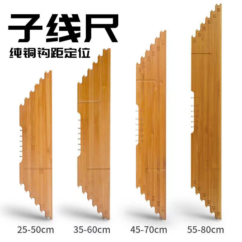 Aksesori memancing pendek multi-fungsi, penggaris memancing kayu solid papan pengukur super panjang dengan kait jarak garis papan penggaris perangkat pengikat