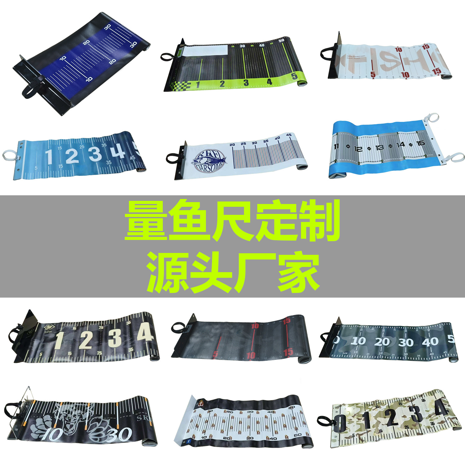UV Printing Handmade Injeksi PVC Bahan Memancing Luar Ruangan Pengukur Ikan Penggaris Kustom Lembut Kembali Tahan Aus