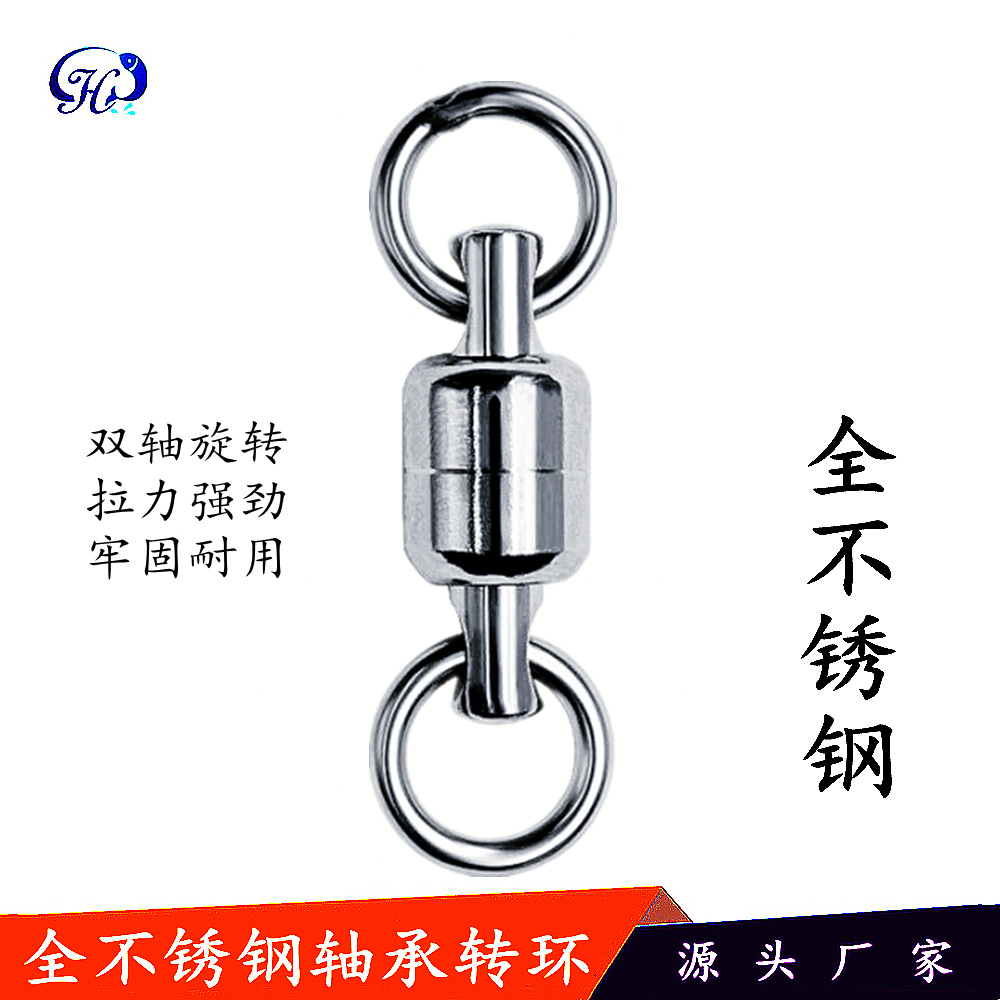 Bantalan putar baja tahan karat kepala bulat ganda, aksesori perlengkapan memancing konektor delapan cincin bantalan ganda objek besar