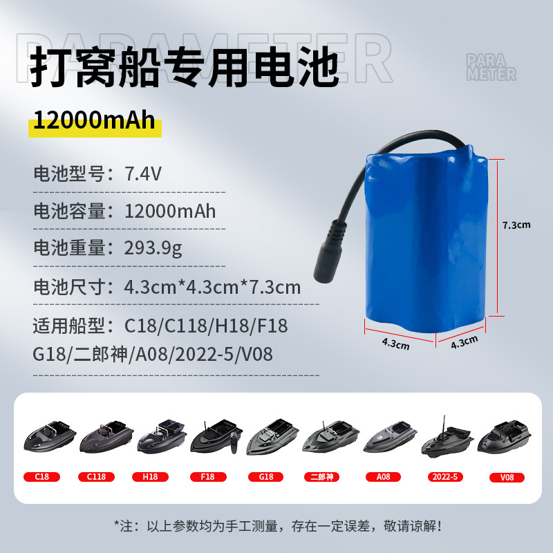 Baterai kapal pancing 12000 mA 18000 mA, kapal pancing 7.4V kapasitas besar baterai lithium isi ulang