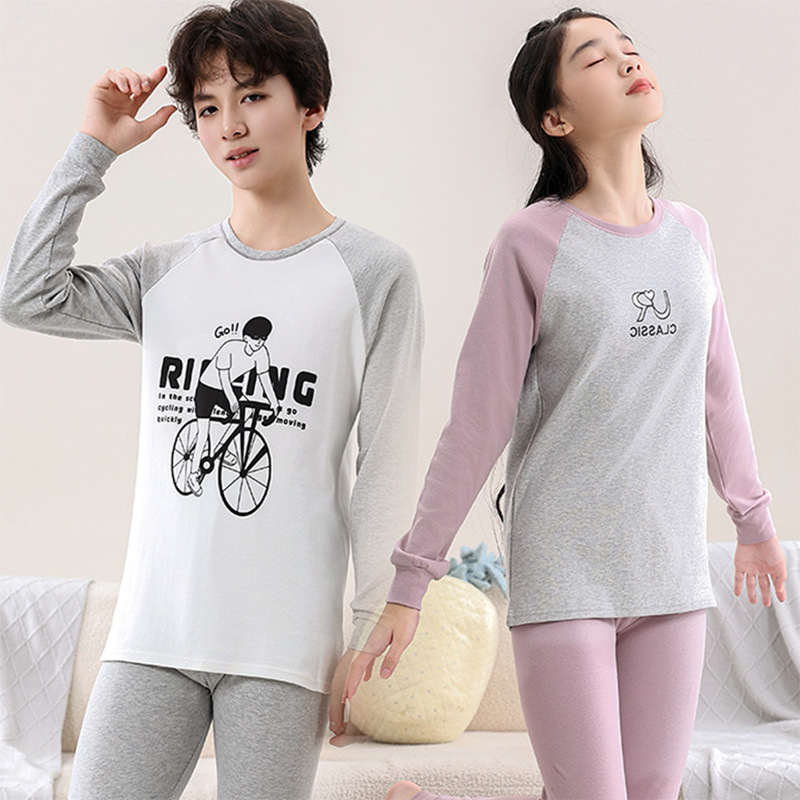Pakaian Musim Gugur Remaja dan Celana Panjang, Pakaian Dalam Termal Anak Laki-laki Katun Murni, Piyama Anak-anak, Sweater Katun Dasar Siswa Sekolah Menengah dan Mahasiswa Perempuan