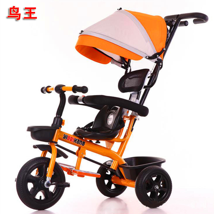 Sepeda bayi roda tiga anak-anak, kereta dorong tangan dorong dengan tenda empat dalam satu