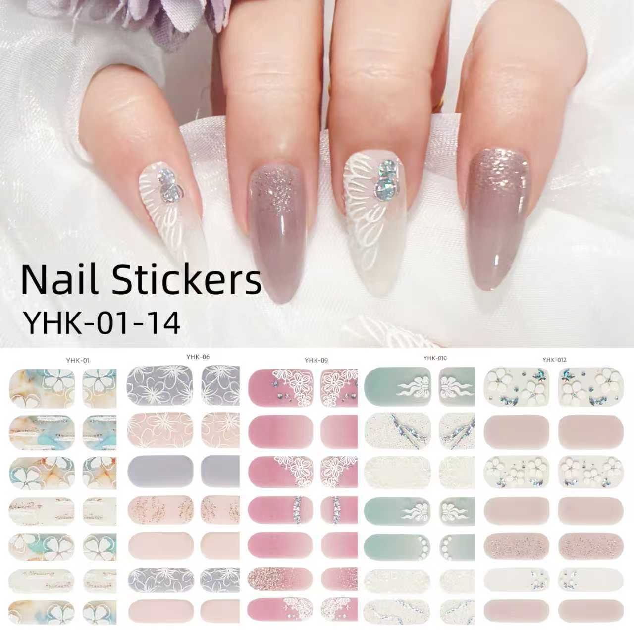 Stiker manikur relief stereo musim semi baru lintas batas stiker penuh stiker manikur tanpa panggang 3D stiker kuku tahan air grosir