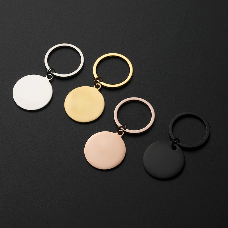 钥匙扣跨境不锈钢圆牌款激光彩印空白材料节日礼物刻字金属钥匙扣