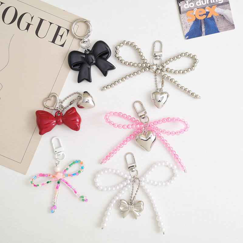 新款彩色糖果色手机链蝴蝶结串珠包包延长链水杯链汽车钥匙扣挂饰