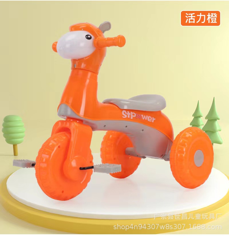 Sepeda roda tiga anak-anak, usia 1-3 tahun ekspor baru dengan musik ringan memuat cepat setang 8 Set Mainan sepeda