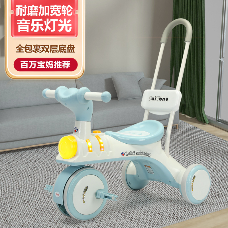 Sepeda roda tiga anak-anak, dengan pegangan dorong pedal usia 2 = 4 tahun dengan musik ringan