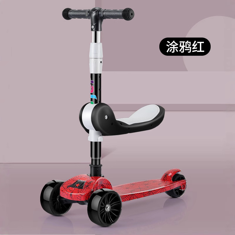 Skuter lipat anak laki-laki dan perempuan, skuter flash empat roda 2-3-6-12 tahun