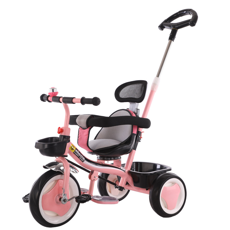 Sepeda roda tiga anak-anak, kereta dorong bayi dua arah tahan matahari untuk anak laki-laki dan perempuan