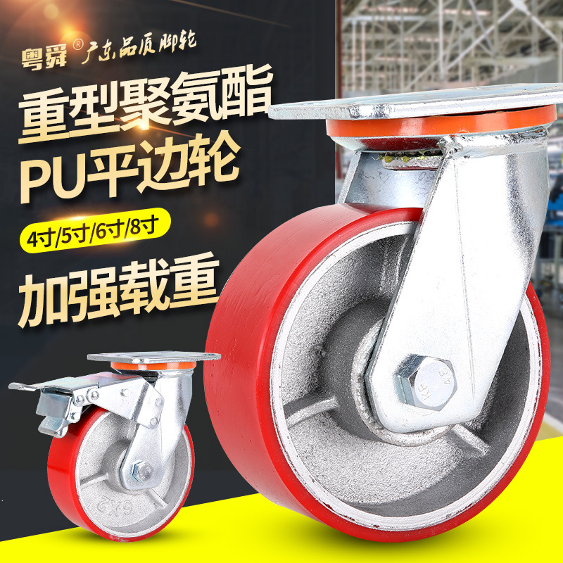 Yueshun roda universal tugas berat, roda troli Roda Pu inti besi cor 4 inci 5 inci 6 inci 8 inci