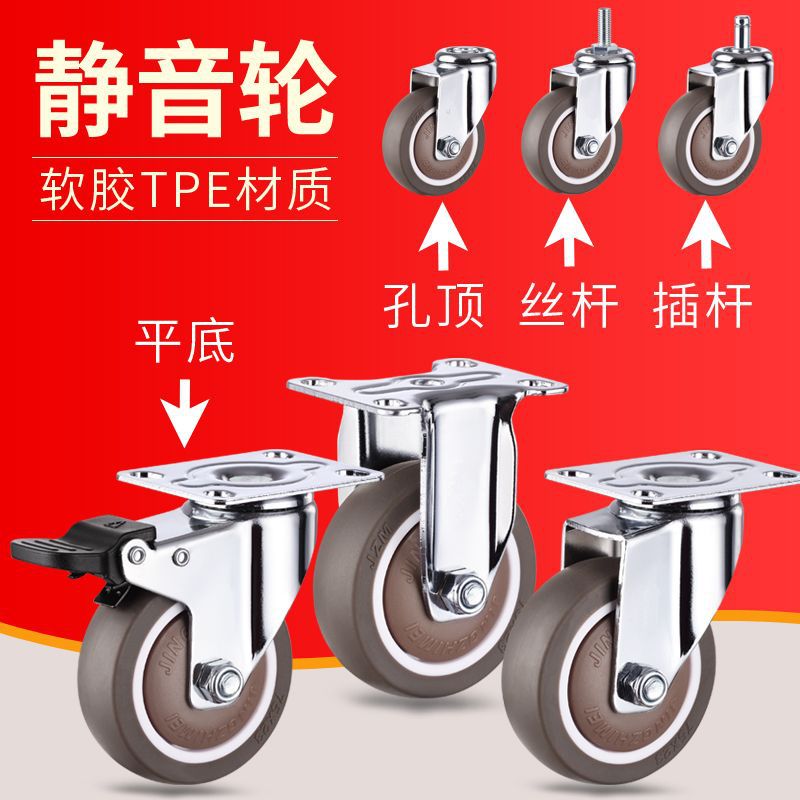 2-inch 2.5-inch 3-inch makan mobil kastor plug Rod datar kemudi roda karet dengan lubang rem top medis universal roda TPR