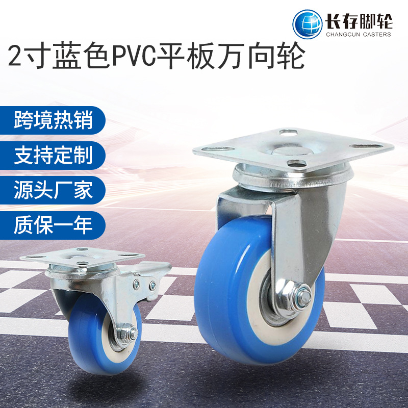 Kastor datar PVC biru 2 inci dengan rem bantalan ganda rol roda universal kastor bisu pabrik katrol industri