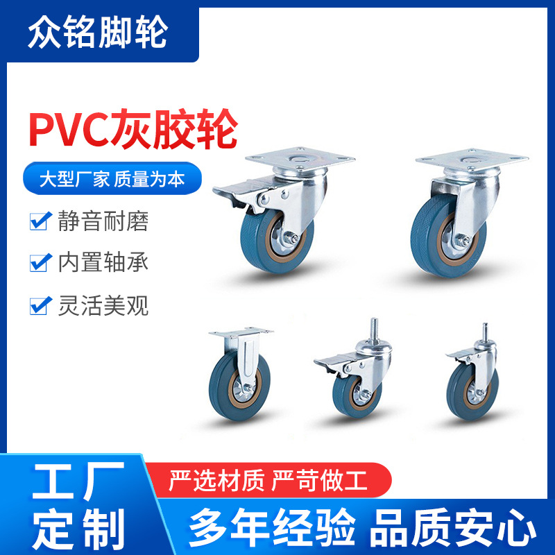Pasokan langsung pabrik roda karet abu-abu pvc roda bisu rem roda rak Tampilan tetap kotak roda roda roda kecil kastor universal